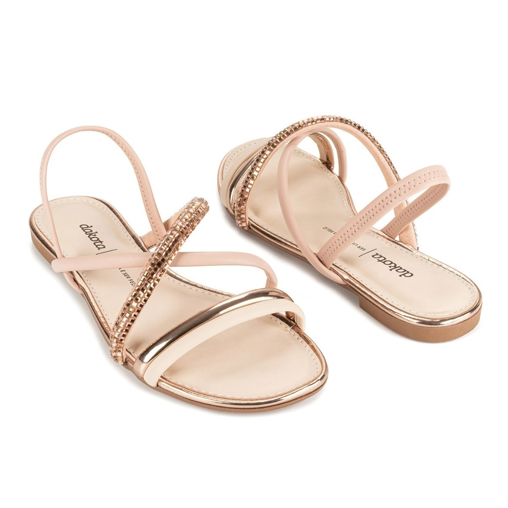 Modelo: Sandália Feminina Dakota Rasteira Tiras Brilho Confortável
